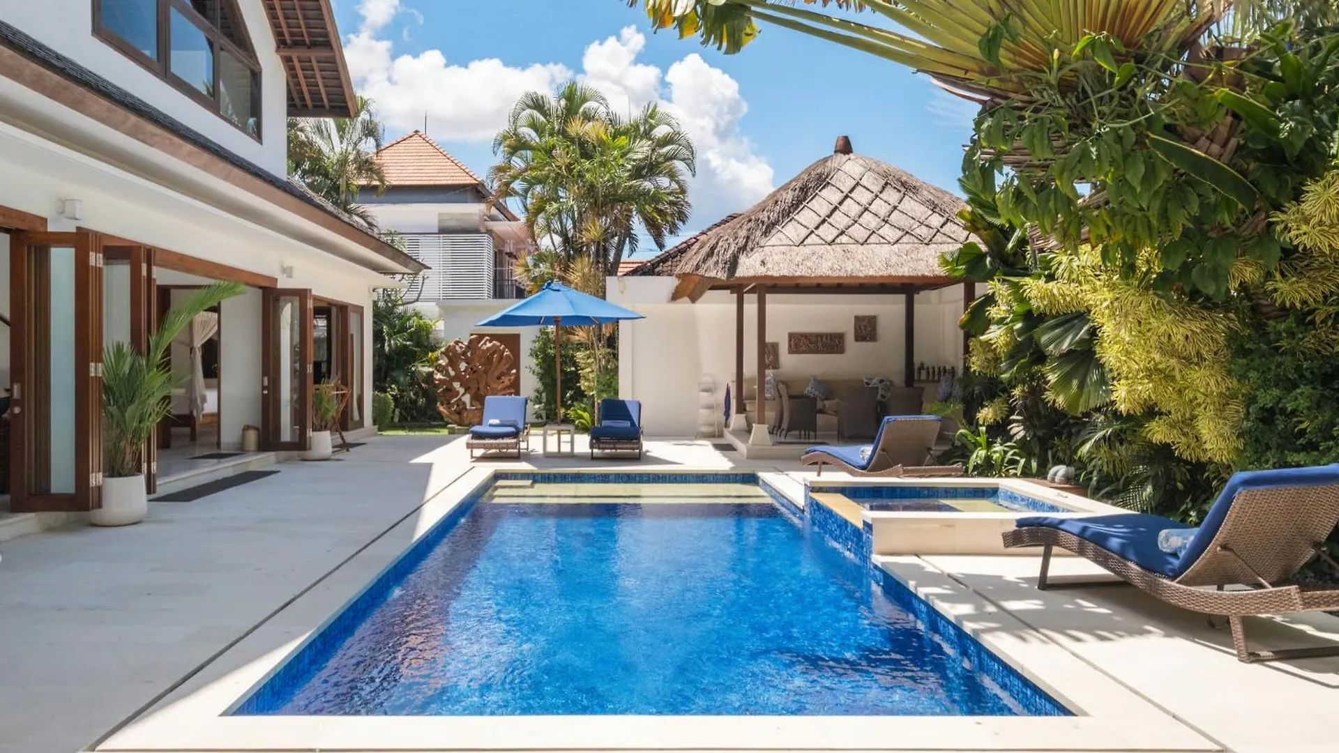 This 4-bathroom villa is approximately 20 minutes' walk from Krisna Oleh Souvenir Store, and just around the corner from The Bali Concierge.
