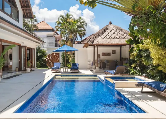 Situated about 25 minutes' stroll from Kuta Beach, the 4-bedroom Villa Kashantre, 4 Bedroom, Sleeps 12 Seminyak features a terrace with views of pool. Offering a private swimming pool views, the villa invites guests to visit Garlic Lane, located just 0.7 miles away.